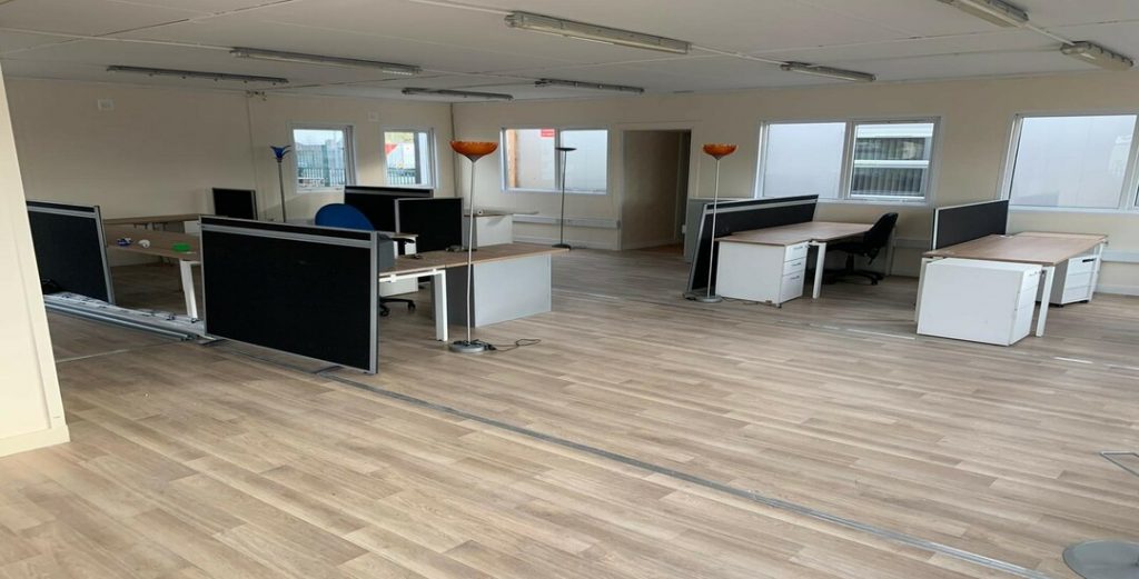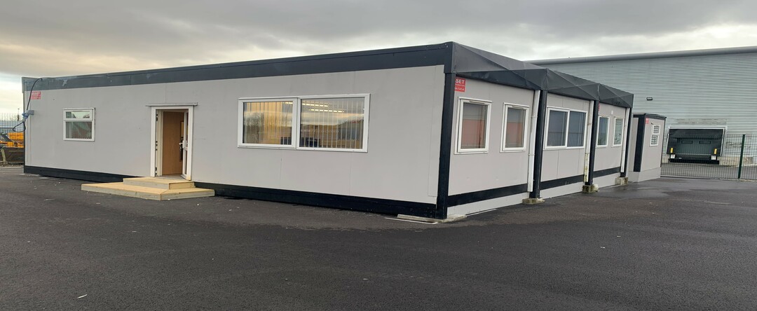 Asset Accommodation Supplied 1 No. 30′ x 30′ Modular Open Plan office with a linking new 40′ x 10′ portable cabin to be used for meeting room, canteen, & 2 no. Toilets.