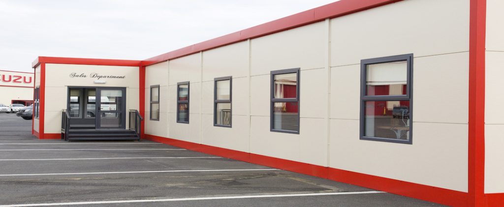 Modular building very simply offer all the comfort and finish of a permanent structure, at an affordable price, these steel modules construct building of multiple storey’s and of unlimited internal space and can be tailor made to suit any purpose from school classrooms, open space offices , hospital extensions to car showrooms.