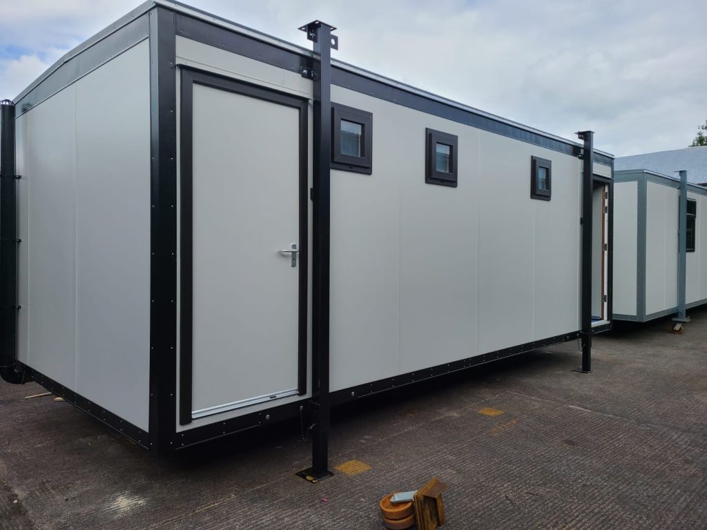 These are stand alone high quality portable cabin that do not require jacklegs. these units are designed to meet with your specification. These units come with a mono-pitch roof (Sloping & High Insulation) , UPVC Windows, UPVC Door, Fully Fitted Electrics (including emergency lighting & fire alarm) & UPVC Guttering. these units can be fitted with various toilets, urinals, hand basin, boiler rooms, storage areas & showers. They can also be fitted with external cladding to give it a impressive external finish.
